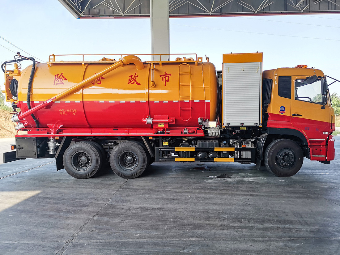 吸污部分:16方污罐,罐體8mmQ235優(yōu)質(zhì)碳鋼,配濰柴420副發(fā)動機帶淄博SK-42/258水循環(huán)泵,罐體內(nèi)部平鋪1.2米不銹鋼底板,10米吸污管一根,進氣管加過濾網(wǎng),防溢閥加高,后蓋卡扣鎖緊,前視污量管,后尾部加裝3個100mm的球閥吸污口,600mm排污口液壓開啟,150mm排污球閥,罐體帶舉升功能。