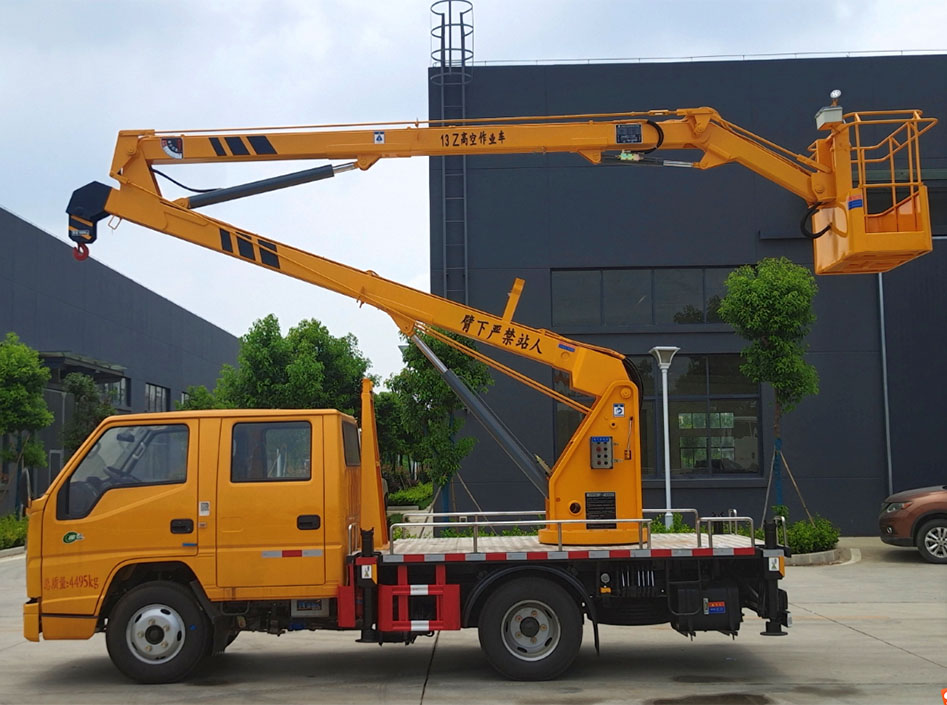 國(guó)六江鈴雙排13米藍(lán)牌曲臂高空作業(yè)車(chē)改裝配置:液壓360度全回轉(zhuǎn),三節(jié)折疊臂,單液壓舉升缸,帶雙向平衡閥,帶電控操作舉升臂, 四支液壓油缸可調(diào)式支腿帶雙向液壓鎖(支腿操作為手動(dòng)操作,可單獨(dú)**),上下二套操作臺(tái),帶 1 噸吊鉤,**作業(yè)高度 13米,**作業(yè)半徑 5.6 米,**起吊重量1噸。
